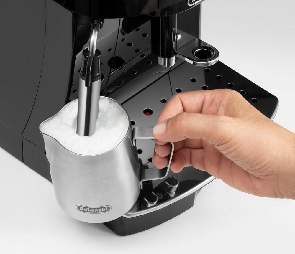 Máte-li rádi bohatou pěnu, pak můžete využít ruční trysku pro perfektní napěnění mléka. Snadno si tak připravíte vynikající cappuccino z kavárny nebo oblíbenou mléčnou pěnu pro děti. Espresso DeLonghi ECAM22.110B je vybaven vyjímatelnou spařovací jednotkou s kapacitou 6-14 g kávy a má velice snadné ovládání. Stiskem tlačítka si navíc můžete nastavit požadované množství kávy a otočným ovladačem rozhodnout o její intenzitě - přesně podle vaší chuti!