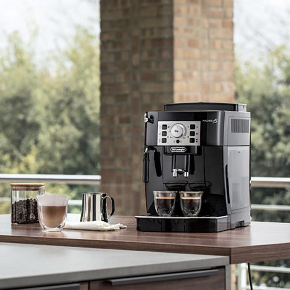 Automatické espresso De'Longhi je nadupaný přístroj, s jehož pomocí si v pohodlí domova připravíte kávu nebo cappuccino jako od skutečného baristy. Zařízení má příkon 1 450 W a vysoký tlak čerpadla 15 barů, který je zárukou lahodné chuti.