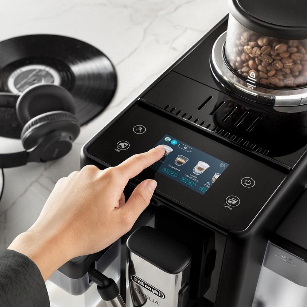 DeLonghi černá dotykové s integrovanou nádobou na mléko 19 bar 1.4 l 250 g 10 porcí 140 mm 2 dotykový displej s nádržkou na vodu 1450 W ocelové 13 9.78 kg 38.5 cm 24.5 cm 43 cm se snadnou údržbou 4 pro 1-2 osoby kompaktní 16 standardní