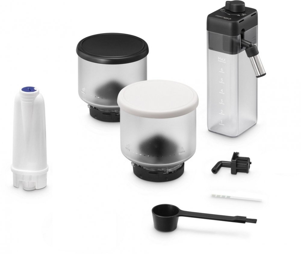 Funkčnost tohoto kávovaru je rozšířena i o možnost přípravy kávy s mlékem nebo bez něj, což je ideální pro ty, kteří preferují různé varianty kávových nápojů. Díky dvěma zásobníkům na kávu můžete snadno přecházet mezi různými druhy kávy bez potřeby čištění mezi jednotlivými cykly.