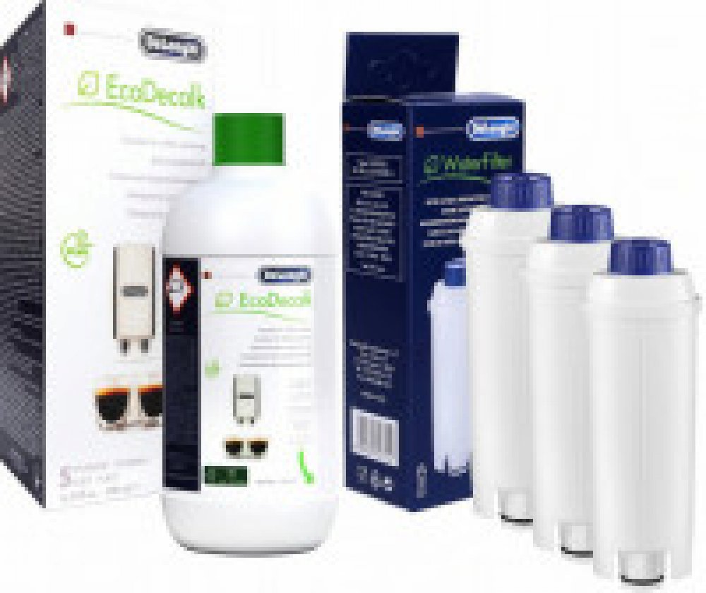 Vodní filtr do kávovar DeLonghi DLS C002 Filtr je určený pro modely kávovarů BCO 410/420, EC 850/860, ECAM 21/22/24/26.., ESAM 66/67/69.. Filtr do kávovaru zabraňuje tvorbě vodního kamene a tím prodlužuje životnost samotného spotřebiče. Dále příznivě ovlivňuje kvalitu připravované kávy. Životnost filtru je 2 měsíce od jeho instalace nebo přefiltrování 50 litrů (cca 400 šálků) vody. DeLonghi EcoDecalk 500 ml odstraňovač vodního kameneŠpičkový ekologický přípravek do manuálně ovládaných i automatických kávovarů. EcoDecalk je šetrný k životnímu prostředí a současně velmi účinný prostředek vůči vodnímu kameni, anorganickým a tvrdým usazeninám uvnitř zařízení. Je vyroben z vysoce kvalitních surovin rostlinného původu, které jsou biologicky odbouratelné. Pravidelné používání výrobku EcoDecalk pomáhá k delší životnosti. Výrobek také přispívá ke snížení energetické spotřeby zařízení, jelikož vodní kamen zanesený v kávovaru může spotřebovat až o 30 % více energie. Balení 500 ml umožňuje 5 odvápňovacích cyklů.• Přesný popis použití tohoto výrobku naleznete v návodu svého přístroje.Součástí balení DeLonghi EcoDecalk 500 ml odstraňovač vodního kamene 1 ks + DeLonghi DLS C002 filtr 3 ksfunction toggle(obj) { var obj=document.getElementById(obj); if (obj.style.display == "block") obj.style.display = "none"; else obj.style.display = "block";}Bezpečnostní zdrojeDeLonghi Appliances s.r.l, Via L. Seitz, 47 31100, Treviso - Italy, tel. +39 0422 4131function toggle(obj) { var obj=document.getElementById(obj); if (obj.style.display == "block") obj.style.display = "none"; else obj.style.display = "block";}