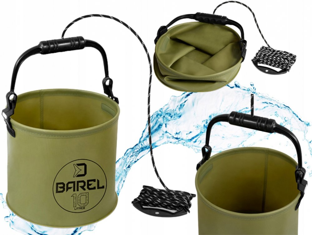 Slouží hlavně k zalévání ryb na podložce těsně po jejich zdolání a během focení, avšak může být využit také jako malá zásobárna vody pro různé účely jako míchání krmiva nebo mytí rukou a také jako kterékoliv jiné vědro pro uskladnění náčiní, nástrah a podobně. Vědro BAREL je doplněno o pevnou rukojeť černé barvy s provazem, pomocí kterého je možné nabrat si vodu i z větší vzdálenosti od břehu nebo z méně přístupného břehu či člunu.