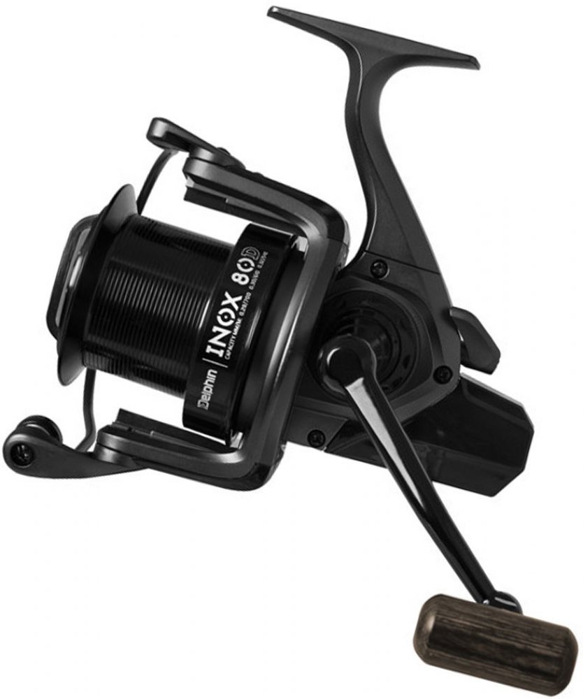 Elegantní design navíc dotváří precizně zpracované dřevěné madlo na klice, které výborně padne do ruky. Řada INOX přichází ve dvou vyhotoveních s označením 70D a 80D. Menší bratr s označením 70D má kompaktnější rozměry a nižší hmotnost, což ho předurčuje zejména k lovu na menších vodních plochách. 80D představuje velkokapacitní naviják, který díky svému robustnímu provedení zvládne i ty nejtěžší výzvy při vašich výpravách za kapry. Disponuje cívkou, která pojme opravdu velké množství vlasce a umožňuje tak lov i ve velkých vzdálenostech a taktéž je vhodný na daleké nahazování. Hlavním rozdílem kromě rozměrů je provedení kliky. U modelu 80D jde o běžné provedení upevnění, při kterém se oska provede tělem navijáku a dotáhne se šroubem na opačné straně. Klika modelu 70D se upevňuje našroubováním přímo do těla navijáku, nemá tak žádnou vůli. Uvnitř obou modelů se nachází seskupení 6+1 kuličkových ložisek z nerezové oceli, které se starají o plynulý a hladký chod. Rotující hlava navijáku je opatřena nenápadnými částmi, které slouží jako zábrana proti spadnutí vlasce pod cívku a jeho následnému zamotání. Oba modely disponují systémem pomalé oscilace tzv. "slow oscilation", který zajišťuje důkladné ukládání vlasce na cívku. Díky této vlastnosti se při nahazování vlasec z cívky odmotává mnohem lehčeji, což výrazně pomáhá k dalekým náhozům. Vnitřní komponenty vyrobené z nerezové oceli v kombinaci s odolností vůči slané vodě zaručují dlouhou životnost a dělají z něj naviják i do těch nejnáročnějších podmínek. K základnímu balení je možné dokoupit i náhradní hlubokou a také mělkou cívku.