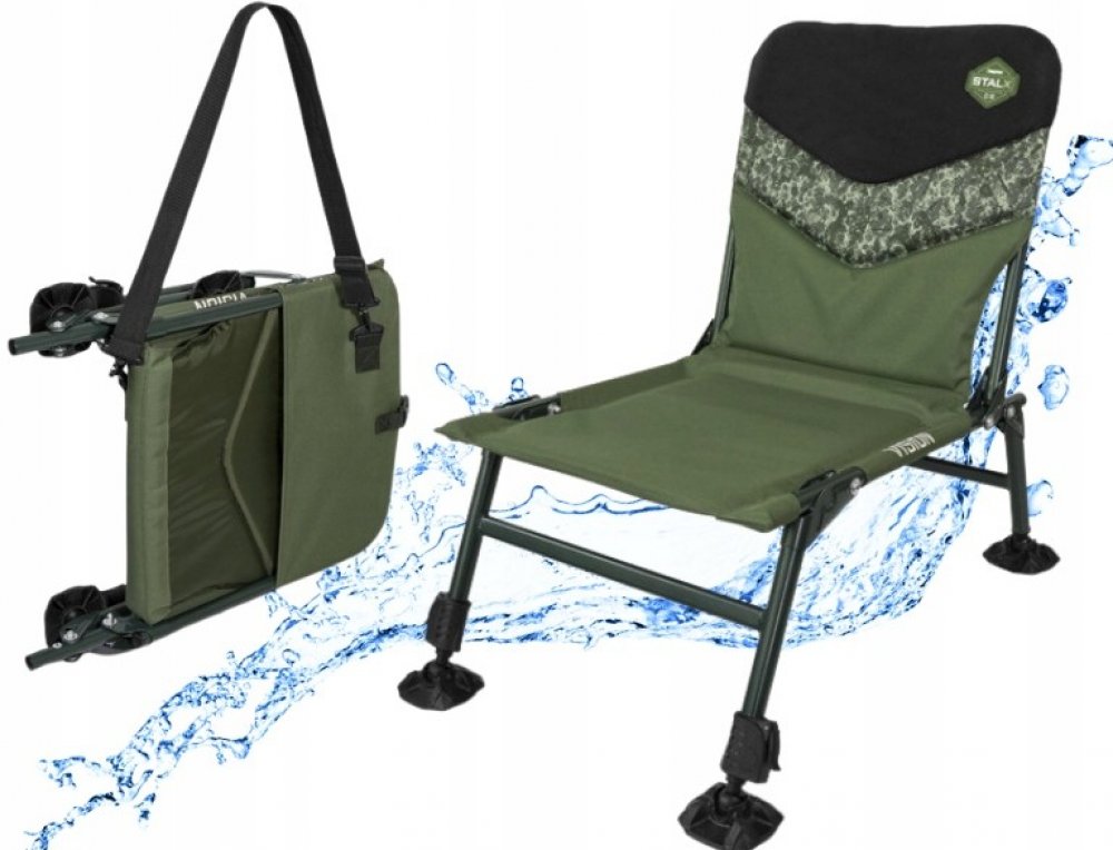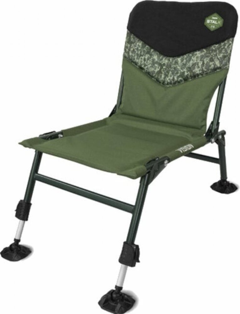 Nohy křesla jsou opatřeny robustními a flexibilními patkami, které se přizpůsobí každé nerovnosti terénu a zároveň zabraňují zaboření do měkké či bahnité země. Přední pár nohou je výškově nastavitelný, čímž křeslo nebude problém rozložit ani na malých a nerovných místech. Zadní nohy jsou fixovány pomocí pojistek, které zaručí, že ani při posouvání se Vám více nohy křesla nezavřou a nehrozí tak nečekaný pád.