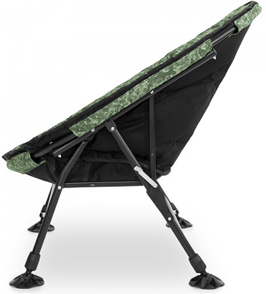 Jednu z hlavních výhod tohoto křesla najdeme v oblasti nohou, které jsou plně nastavitelné. Každou z noh si můžete individuálně vysunout podle vašich potřeb a podle členitosti terénu. Díky širokým patkám s kloubovým uchycením lze křeslo postavit i v nerovném terénu či na bahnitém podkladu.