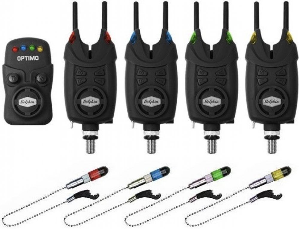 2x vodě odolný signalizátor, 1x přijímač, 2x signalizátor CSW-II a 2x pár Snag Gear.