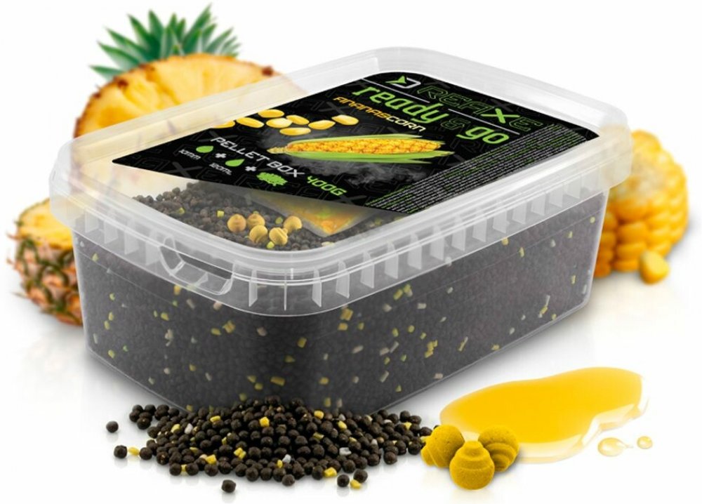 Delphin Pelety Reaxe Ready&Go Pellet Box + Booster a Nástrahy Mango-Broskev 400 g