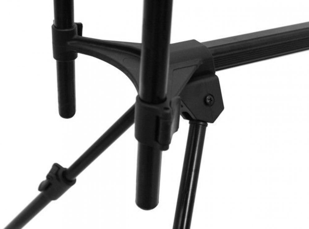 Je výjimečně lehký, velmi stabilní a všestranný. Díky unikátnímu systému skládání se Delphin BRONX vejde do malého textilního pouzdra, které zabere cestou na ryby jen minimum místa. Toto přenosné pouzdro je samozřejmě součástí balení. Celý stojan rod pod je vyroben z hliníkových profilů, které jsou spojovány spojkami z velmi odolného ABS plastu.