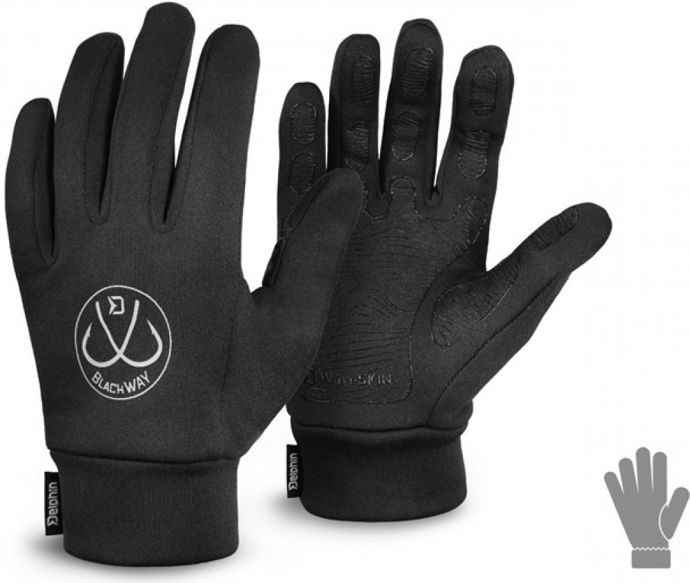 Rukavice jsou zárukou elegance a funkčnosti. Jak už název napovídá, rukavice jsou černé barvy a obsahují efektní logo BlackWAY, čímž jsou kromě rybaření vhodné do přírody, ale i pro běžné nošení ve městě. Tenká, ale přitom velmi účinná teplotní izolace spolu s ergonomickým střihem umožňuje maximální volnost pohybu vašich prstů. Speciální pogumovaný povrch SkinTouch odpuzuje vodu a zvyšuje tření mezi plochami, což zaručuje spolehlivý úchop i kluzkých povrchů. Měkká výstelka rukavic a přizpůsobený střih poskytují jedinečný komfort během nošení. Plastový klip na rukavicích umožňuje rukavice společně sepnout. Nezvolňujte ze svého stylu i když se nacházíte v lůně přírody a užijte si rybaření s elegancí!