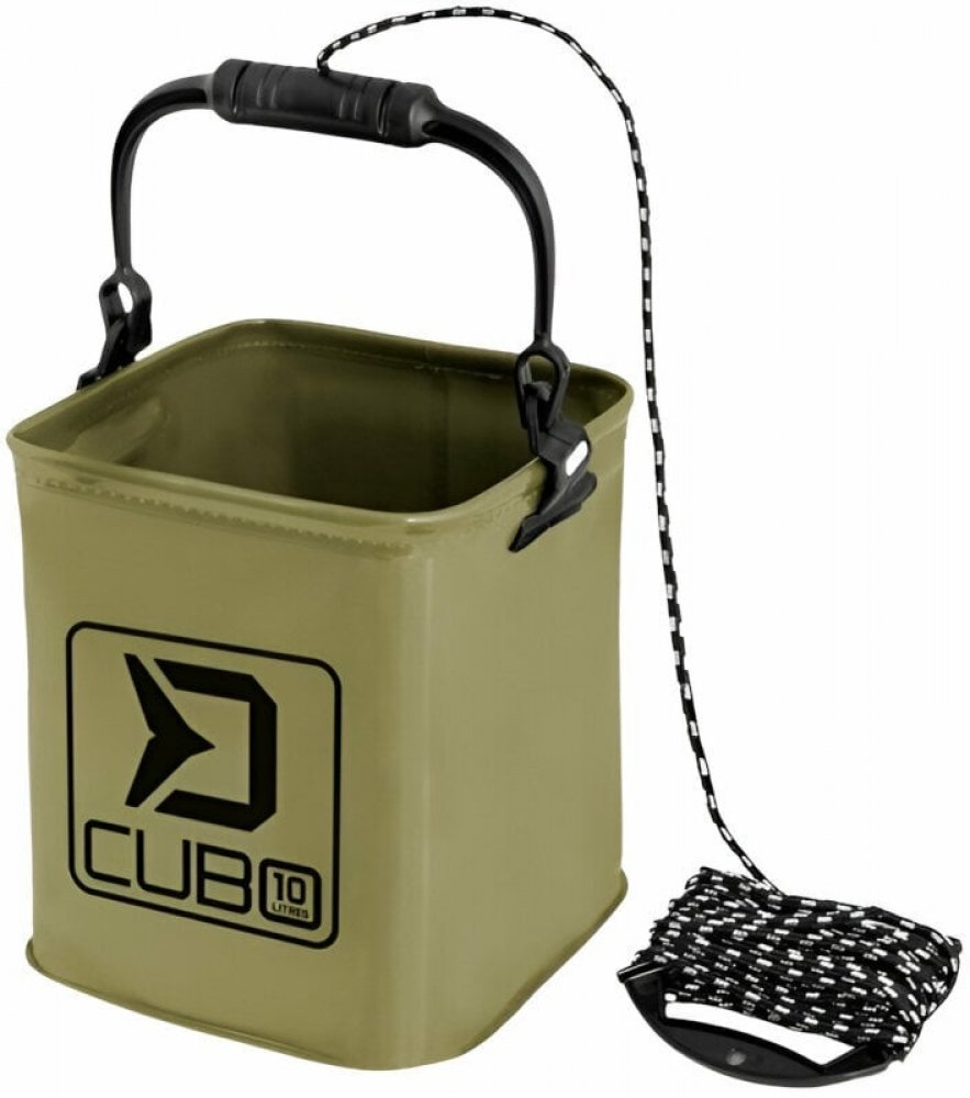 Delphin CUBO je praktické vědro, vyrobené z nepromokavého EVA materiálu s minimálními transportními rozměry, díky čemuž nezabere ve vaší výbavě téměř žádné místo. Své využití najde zejména při polévání úlovků na břehu, ale i při přenosu užitkové vody, přípravě krmení nebo v něm můžete jednoduše skladovat různé příslušenství během pobytu u vody. Specifické je svým hranatým tvarem, který obsáhne větší množství vody než vědro kruhového tvaru se stejnými transportními rozměry. Výhodou takového tvaru je také možnost, lít vodu buď pomaleji přes roh nebo prudce přes celou hranu kbelíku. Díky praktickému držadlu, na kterém je namotán provaz, je možné nabrat vodu i v těžkém terénu z větší výšky, případně z člunu. Devizou je také pevné plastové madlo, se kterým můžete naplněné CUBO bez problémů, dle potřeby přenášet. Delphin CUBO se prodává ve dvou velikostech: 5 L a 10 L.