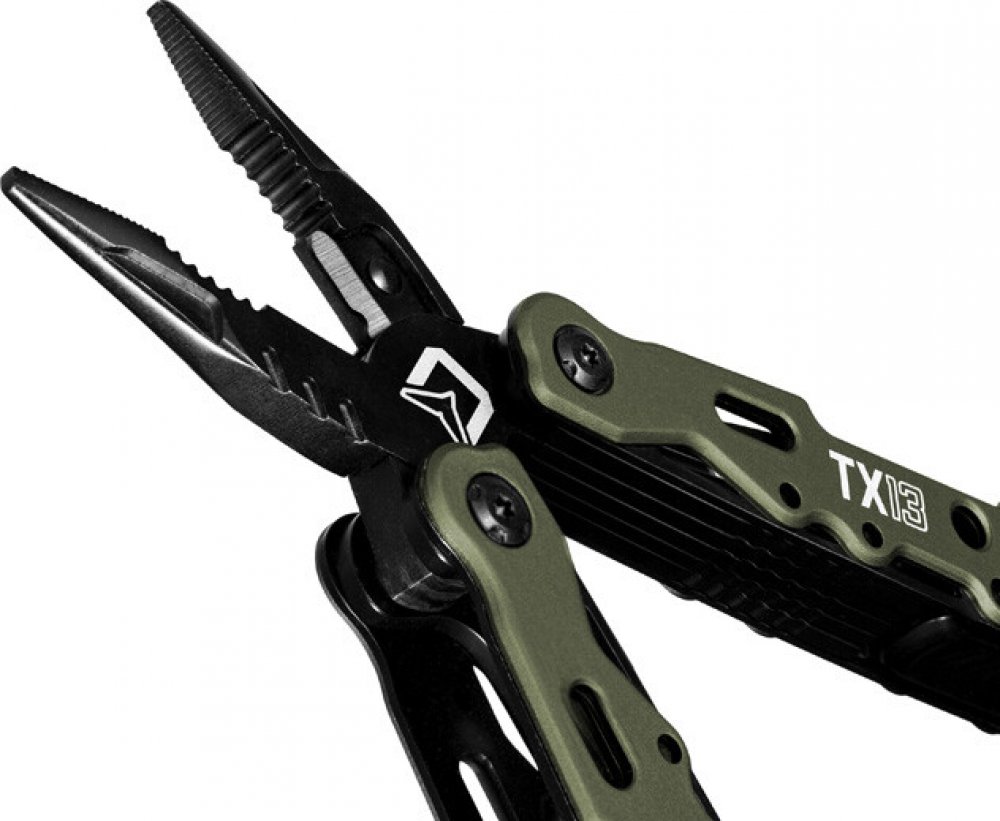 - Multifunkční kleště TaktyX13 jsou dodávány s praktickým pouzdrem, které lze snadno upevnit na opasek.