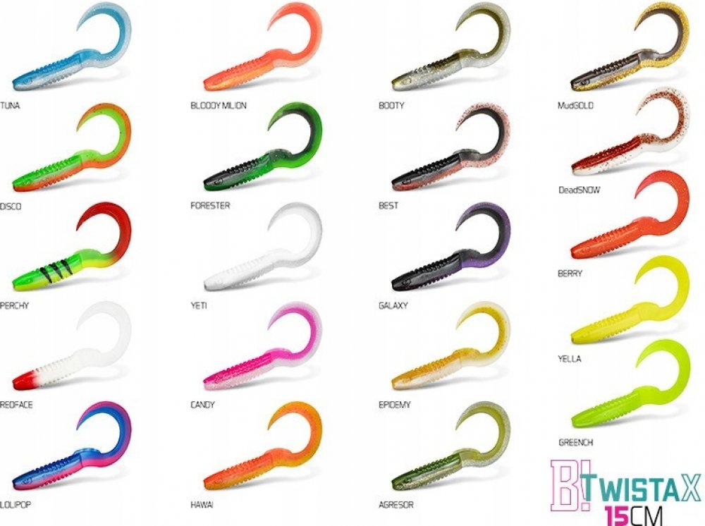TwistaX Ealtail nabízí širokou škálu těch nejúčinnějších barevných provedení, která byla vybrána na základě dlouhodobých testů na vodních plochách po celé Evropě. Navíc jsou tyto barvy UV aktivní a tudíž umožňují intenzivnější odraz slunečního záření pod vodou, a tím pádem se nástrahy stávají nepřehlédnutelnými i ve velkých hloubkách nebo za zhoršených světelných podmínek. Nezapomněli jsme ani na pachovou stopu, kterou gumové nástrahy zanechávají ve vodě. Nástrahy obsahují sůl a rybí aroma a jsou tak neodolatelným cílem predátorů.
