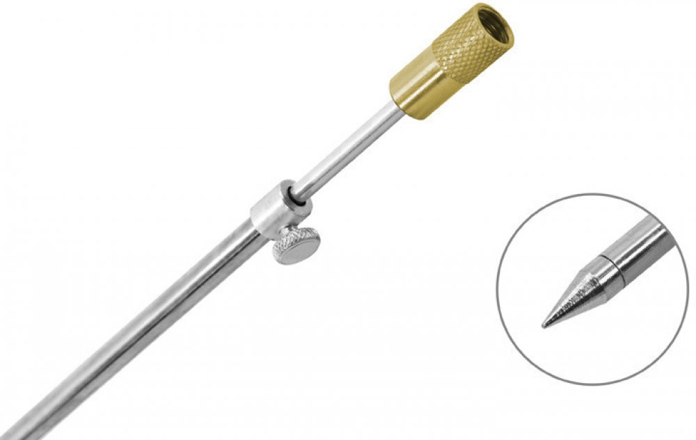 Velmi pevná, stabilní, teleskopická vidlička s hrotem. Vyrobena je z oceli, díky čemuž je výjimečně pevná. Vrchní část vidličky je osazena závitem, kompatibilním s elektronickými signalizátory záběru nebo různými úchytkami. Požadovanou výšku nastavíte jednoduše pomocí závitu s maticí, která slouží k zafixování výšky vidličky.