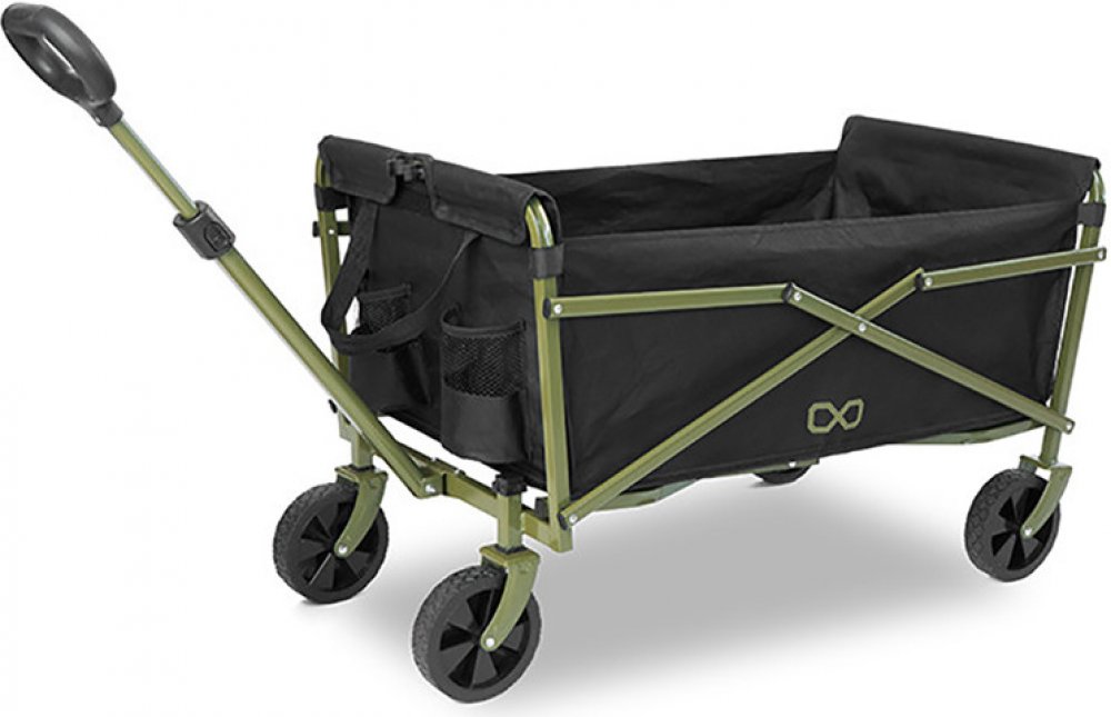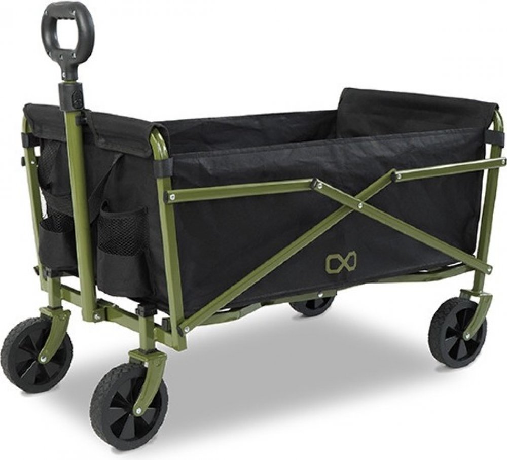 K vysoce praktickému využití vozíku přispívají také dva držáky na láhev či jiné příslušenství, které jsou umístěny na přední straně. Další výhodou je poutko umístěné na dně úložného prostoru, které zjednoduší skládání vozíku. Pro pohodlný transport vozíku ve složeném stavu jsou na obou stranách přišity úchyty.