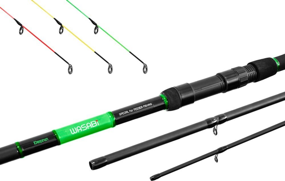 WASABI Feeder si bude dokonale plnit své úkoly při aktivním lovu na feeder a kromě začátečníků si jej oblíbí všichni ti, co hledají kvalitní prut za rozumnou cenu. Všechna provedení feederových prutů WASABI obsahují tři kusy náhradních špiček (1x Light, 1x Medium a 1x Heavy).