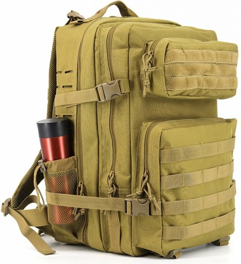 Taktický batoh je velmi pohodlný, prostorný a praktický. Popruhy lze nastavit dvěma způsoby: ve výšce ramen a ve spodní části batohu. Popruhy jsou vycpané měkkým polstrováním, čímž chrání ramena a zajišťují pohodlné nošení po celý den. V zadní části je úložný prostor pro hydratační vložku. Největší vnitřní kapsa se uzavírá zipem, který vede téměř po celém obvodu batohu, s výjimkou dna. Na přední s...