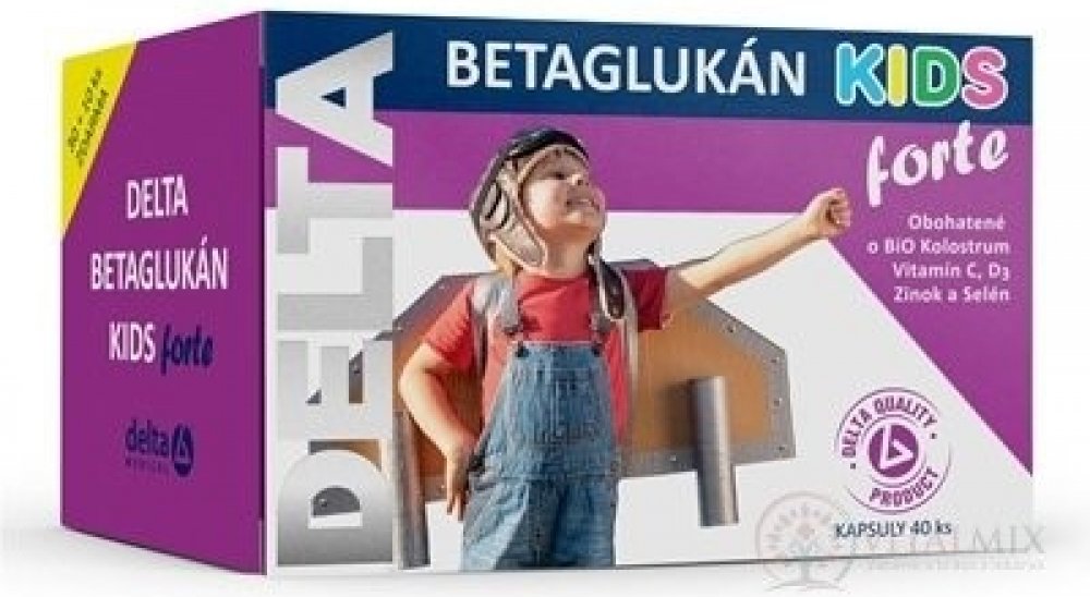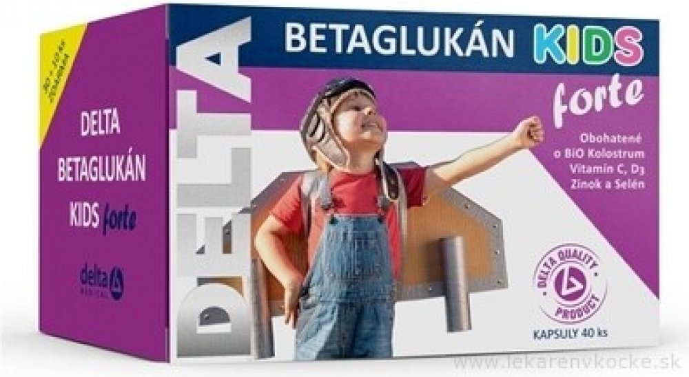 DELTA Betaglukan Kids forte je doplněk stravy pro děti s obsahem betaglukanu a kravského kolostra, které jsou doplněné vitaminy C, D3 a minerály zinkem, selenem na podporu imunity.
