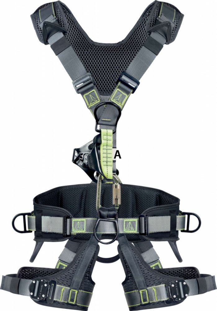 Technický postroj v novém provedení navržený pro lepší ergonomii pracovníků na laně vybavený předním navijákem