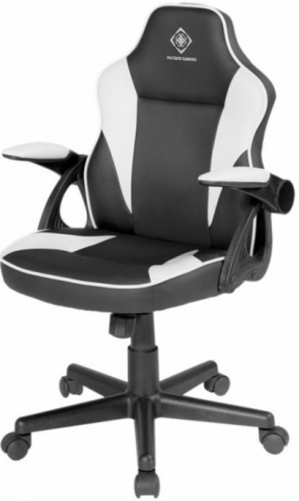 Detská herná stolička DELTACO GAMING DC120, umelá koža, výškovo nastaviteľná, čierna/biela. Herná stolička v klasickejšom prevedení. Kreslo má pohodlný sedák, nastaviteľné podrúčky. DC120 je perfektná prvá herná stolička pre mladých hráčov. Herná stolička v klasickom dizajne. Umelá koža. 120 mm plynový zdvih. Max. Hmotnosť: 80 kg. Maximálna výška: 150 cm. Rozmery stoličky (ŠxHxV): 56,5x54x92-99cm....