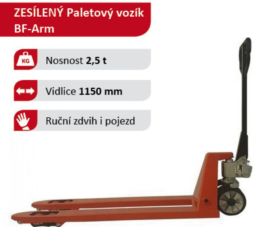Tento vozík si také můžete zapůjčit již od 180 Kč za den!Tento paletový vozík není žádné "béčko". Celkově vozíky s označením BF jsou ta první věc, která by Vám měla přijít do hlavy, když se mluví o ideálním paleťáku pro manipulaci s europaletami.