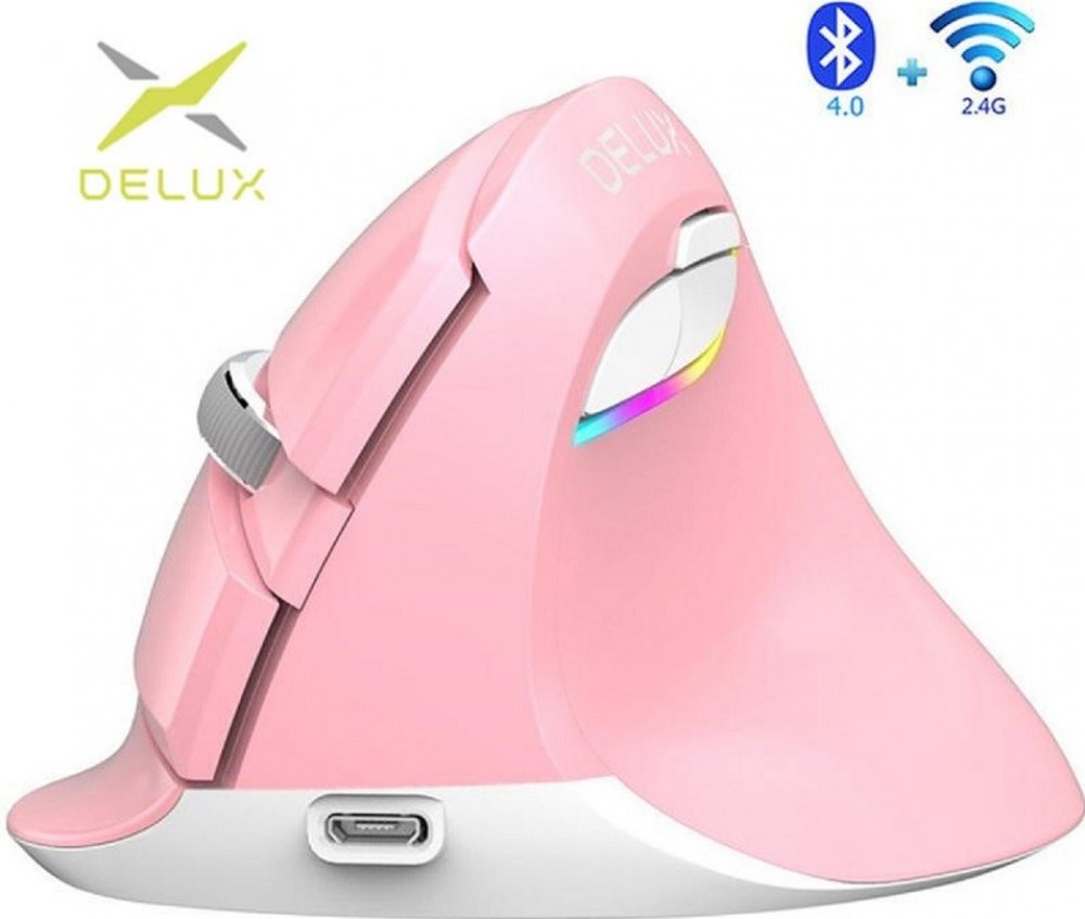 Specifikace: bezdrátová + Bluetooth počítačová myš Delux model M618mini pink M618MPI. (M618MPI)