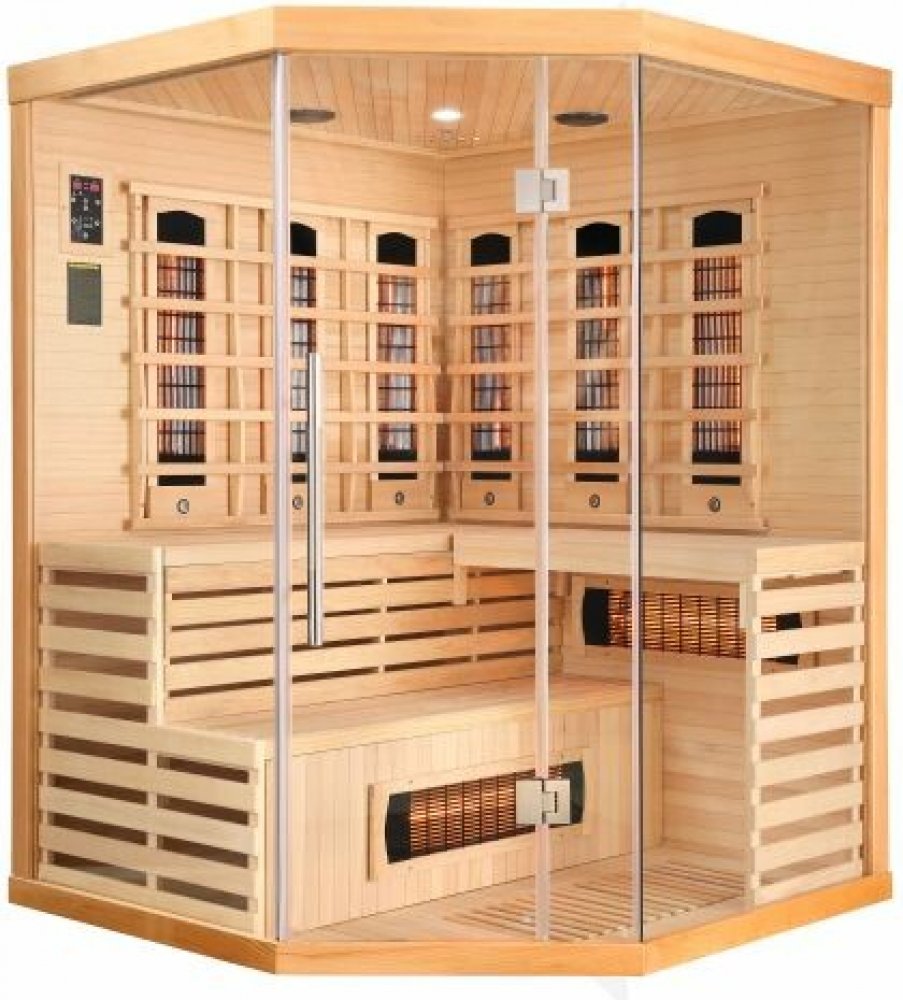Infračervená kabina DeluxePřineste si domů vlastní wellness oázu a zlepšete svou pohodu. Pociťte jemné, ale účinné teplo kabiny, které dokáže vyrovnat nejen vaše fyzické, ale i emocionální zdraví. Příjemné teplo vás uvolní na všech úrovních a umožní vám na chvíli zapomenout na stres. Infračervené kabiny působí blahodárně nejen na vaši mysl, ale i na vaše tělo. Stimuluje se krevní oběh, zrychluje se metabolismus a posiluje se imunitní systém.Podrobnosti o výrobkuČíslo položky:J21150SDřevo:HemlockVnitřní rozměry: 142 cm x 142 cm x 189 cmVnější rozměry: 150 cm x 150 cm x 200 cmPro 3-4 osoby8 plnospektrálních topných těles (6 individuálně nastavitelných) 1 karbonovo-hořčíková topná deskaVýkon: cca 2580 WBarevná světelná terapiedveře a přední sklo z 8 mm bezpečnostního sklaMP3 přehrávač (včetně Bluetooth)elektronický ovládací prvek2 reproduktorySvětlo na čteníVentilace Infrasauna Deluxe 150x150x200 cm