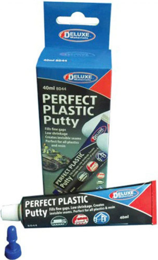Perfect Plastic Putty je jednosložkový, rychleschnoucí tmel husté konzistence na akrylátové bázi. Je ideální na lepení nebo vytváření maketových doplňků v plastikovém modelářství. Po vytvrzení je tmel snadno brousitelný. Má snadné použití, neztvrdlý tmel lze omýt vodou.