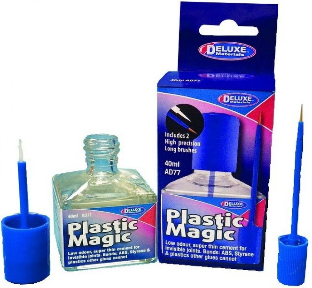Plastic Magic je speciální bezbarvé netoxické lepidlo na plasty s praktickým štetečkem v uzávěru. Největšího využití lepidlo nalezne u plastikového modelářství nebo modelové železnice. Lepí plasty na bázi styrenu ((PS, HPS, PPS, naleptáním ploch.)