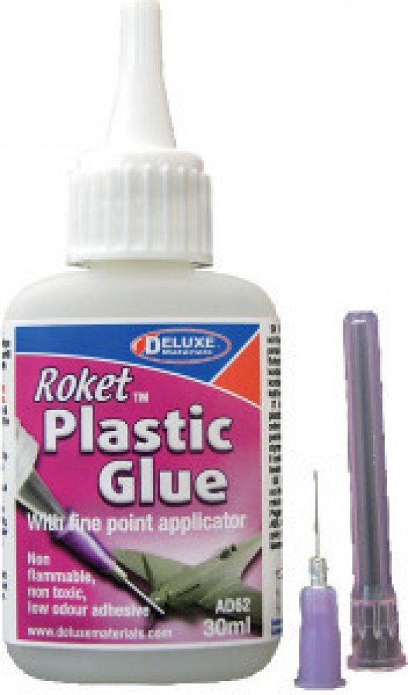Roket Plastic je netoxické lepidlo na plastikové modely. Vytváří naprosto čirý spoj, práce s lepidlem je příjemná a přesná. Obsahuje i miniaplikátor s injekční jehlou pro přesnou aplikaci lepidla do spoje. Doba tuhnutí je 8 až 10 sekund, neztuhlé lepidlo lze omýt vodou.