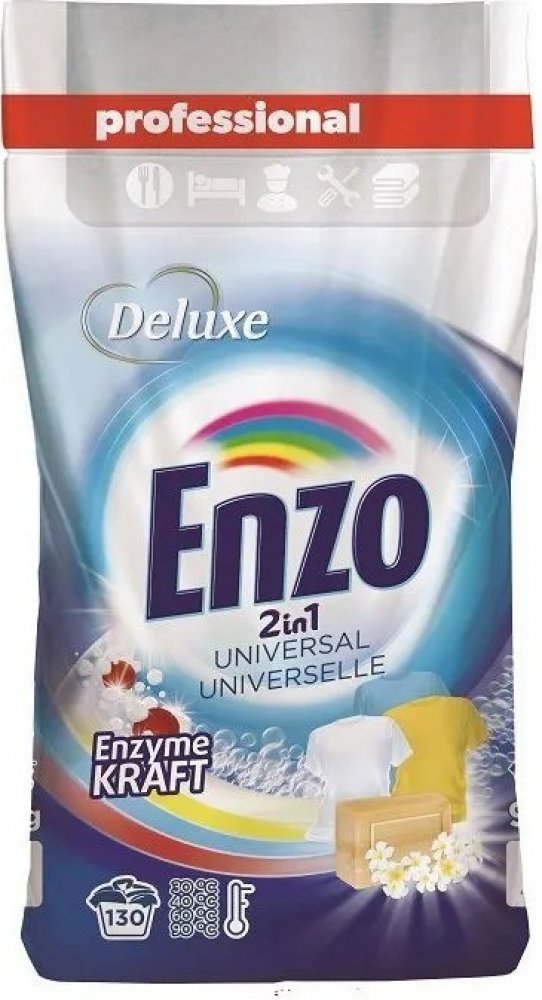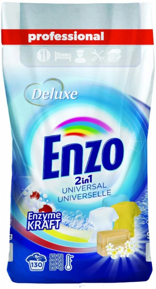 Popis produktu: Deluxe Enzo prací prášek Professional UNIVERSAL universální prací prášek s inovativní technologií pro odstranění nečistot a skvrn, určený pro všechny typy praček a pro ruční praní. Obsahuje složky, které chrání Vaši pračku před usazováním vodního kamene. Před praním se doporučuje prášek rozpustit v teplé vodě. Nebezpečí Standardní věty o nebezpečnosti: H318 - Způsobuje vážné poško...