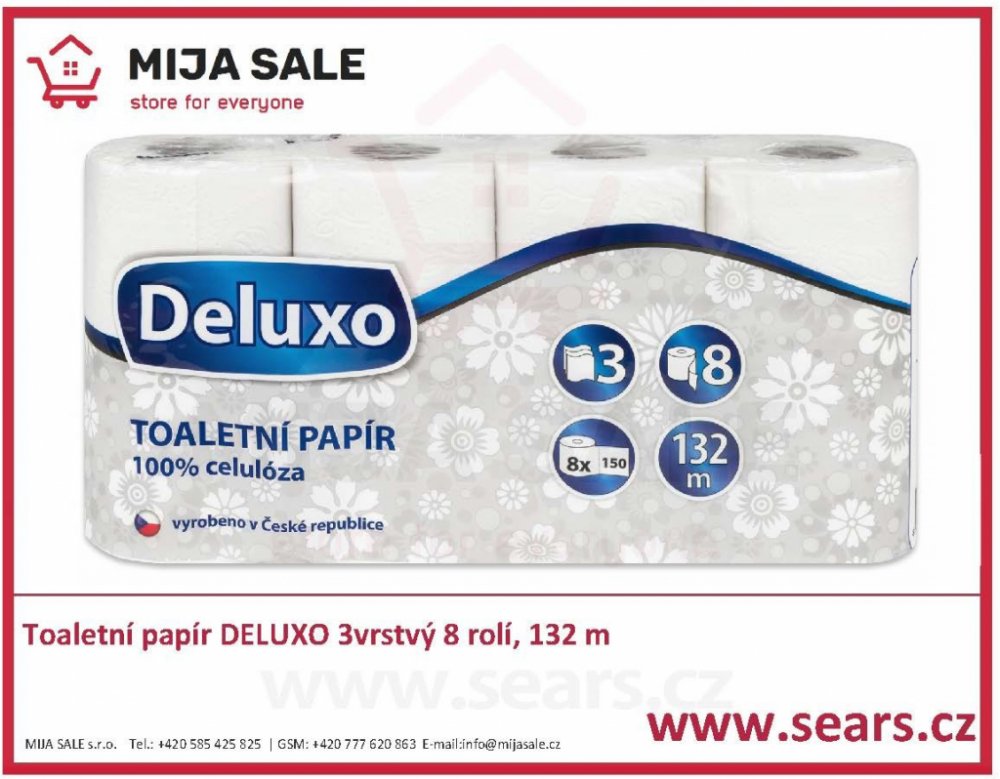 Toaletní papír Deluxo 3vrstvý 8 rolí, 132 m