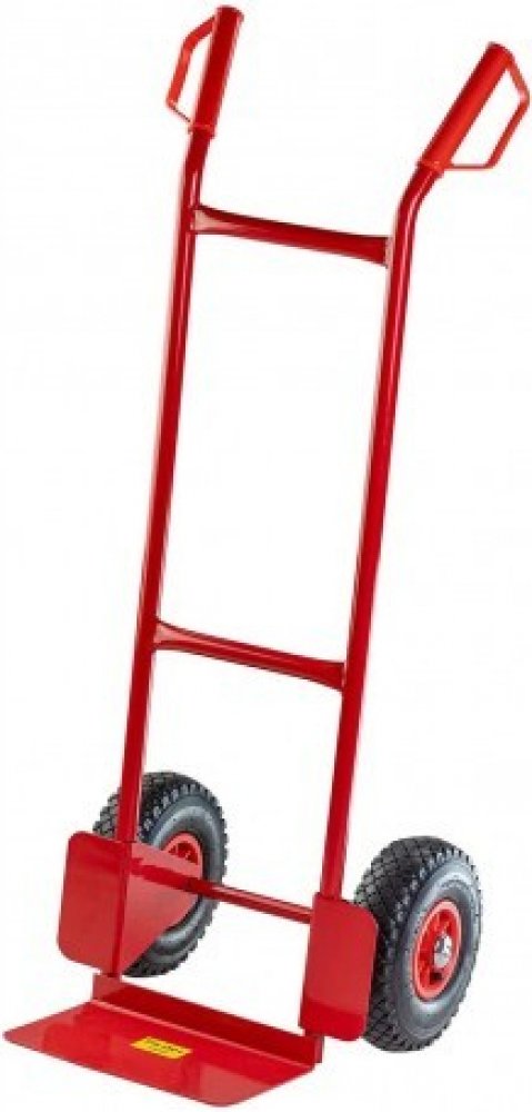 Vozík s maximálním zatížením 150 kg, kovová konstrukce ošetřená práškovou barvou a smaltovaná, velké vzduchové kola s válečkovými ložisky, plastovými ráfky, kovové kryty kol, chrániče rukou. Ideální těžiště nákladu.
