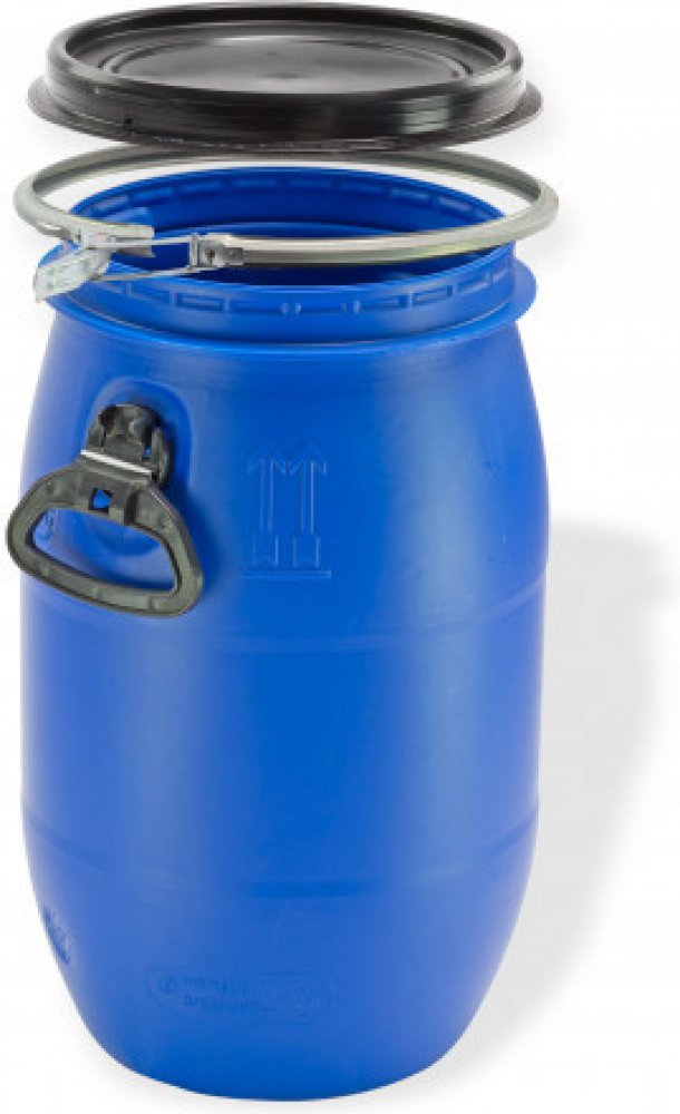 Plastový sud s odnímatelným víkem se širokým hrdlem o objemu 60 litrů. Použití na téměř všechny kapalné a pevné látky s výjimkou hořlavých a toxických látek jako vzduchotěsná nádoba na skladování, ať už jako sud na kvas, nádoba na zachytávání dešťové vody nebo nádoba na krmivo.