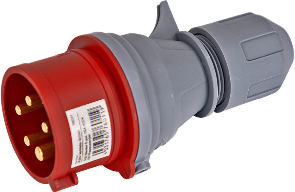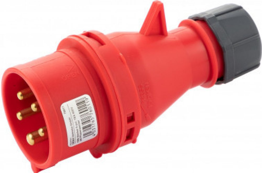 Silnoproudá CEE zástrčka se jmenovitým proudem 16 A, jmenovitým napětím 400 V a fázovým měničem. Pro připojení elektrických zařízení na střídavý proud se jmenovitým napětím 400 V a jmenovitým proudem 16 A. Fázovým měničem lze měnit směr otáčení připojeného motoru, aniž by se musela měnit kabeláž.