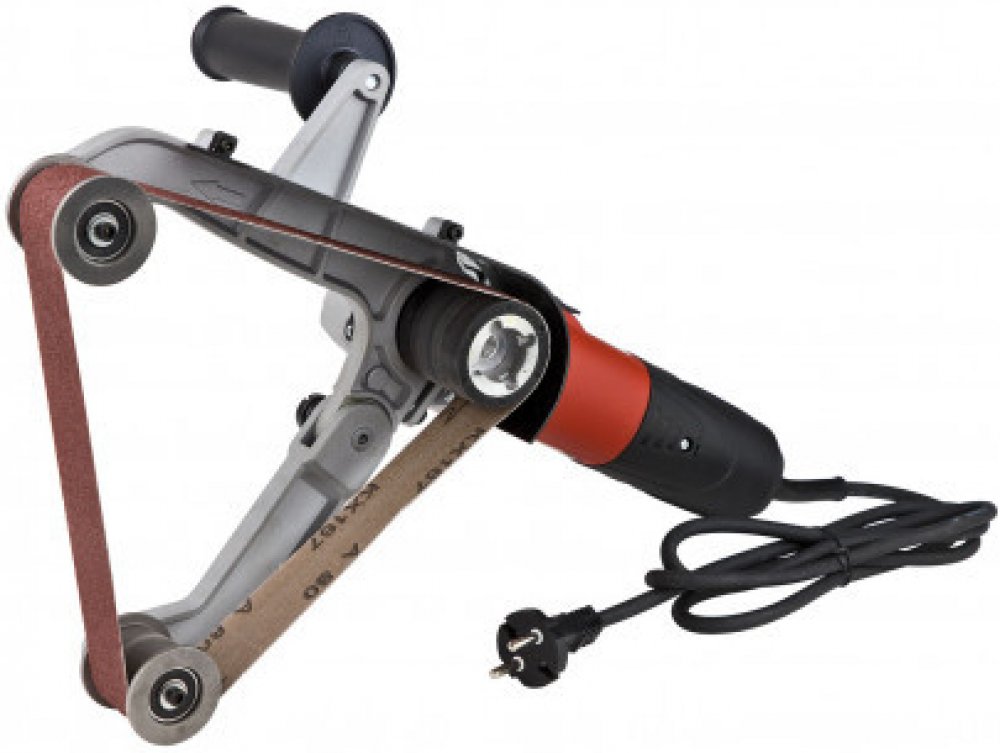 Pásová bruska na broušení, satinování, leštění s vysokým leskem a vyhlazení nerezové oceli a jiných materiálů. Tento všestranný nástroj byl speciálně navržen na ohyby trubek a zaoblený materiál a používá se na čisté opracování svarů a zakončení.