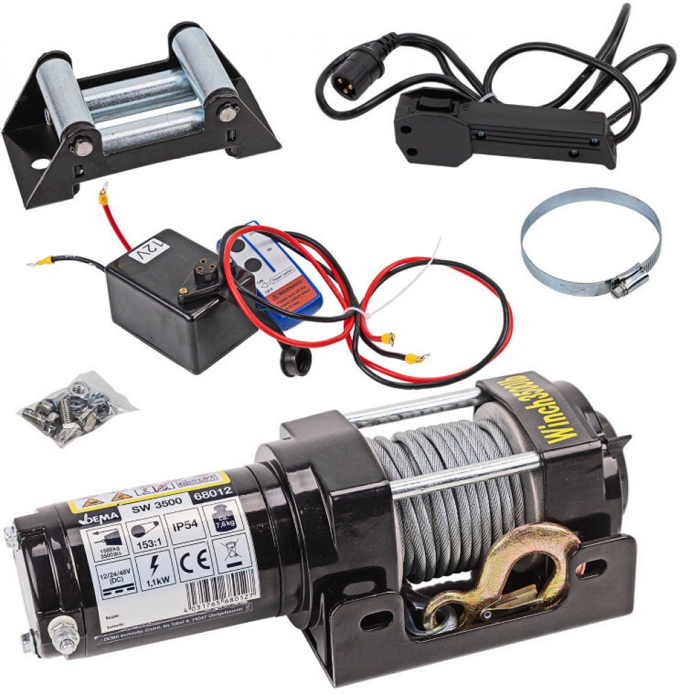 DEMA Elektrický lanový naviják 1,6 t Off-Road 12 V SW3500 68012D