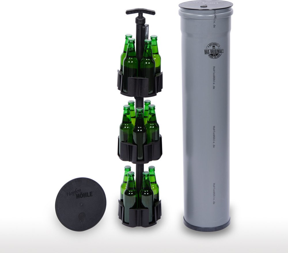 Tepelně izolovaný chladič pivní lahve s vrchním krytem na zabudování do země, odolný vůči UV záření, tlaku a vodotěsný. S držákem na 15 lahví nebo plechovek. Vhodný na všechny typy skleněných lahví 0.3L, 0.5L, plastových lahví 0.5L a plechovek do 500 ml.