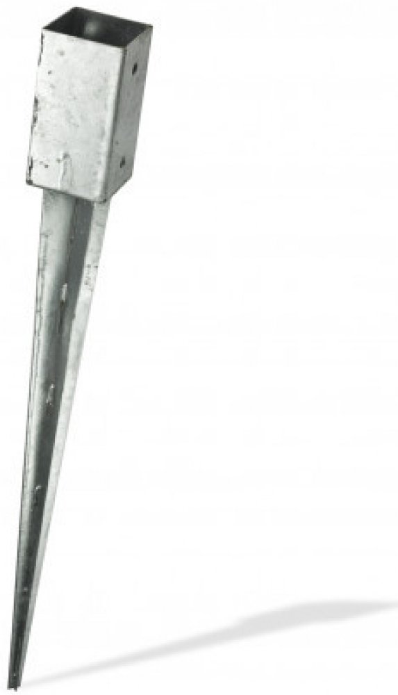 Objímka na čtvercové sloupky pro profesionální upevnění lehkých až středně těžkých dřevěných konstrukcí. Trn na zatloukání do země nebo zabetonování. Celý povrch je žárově pozinkován pro zajištění optimální ochrany proti korozi.