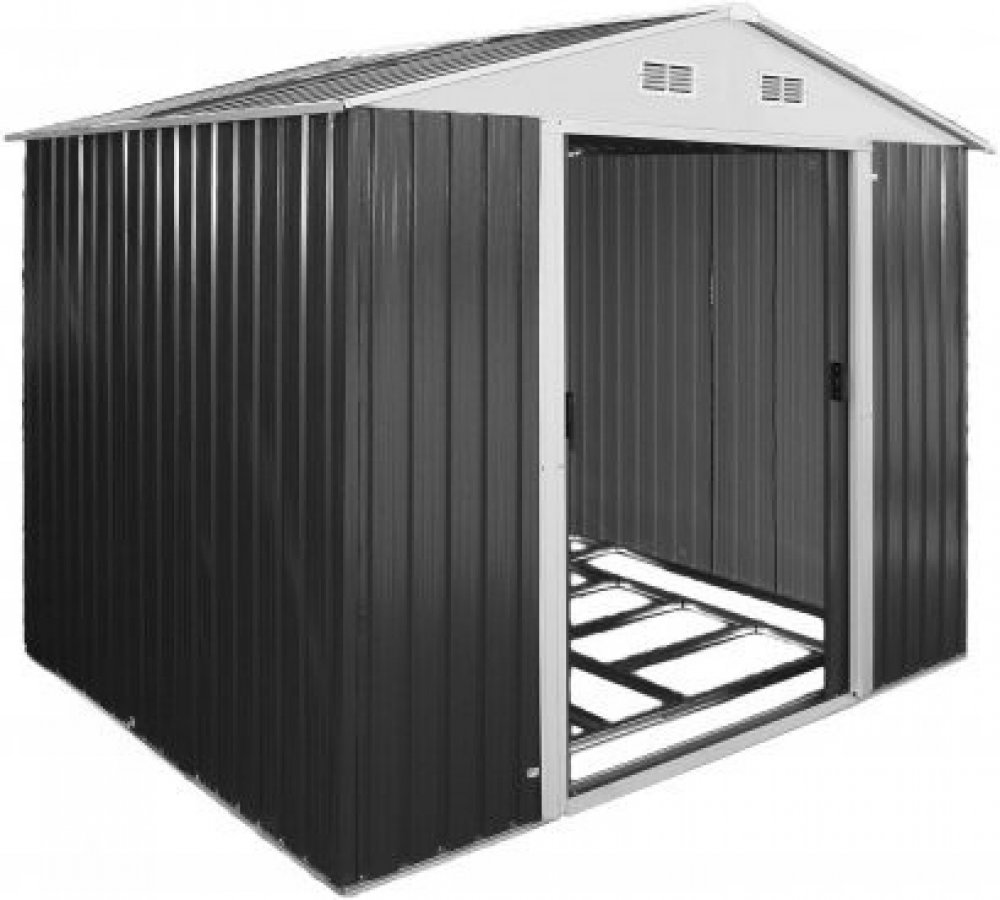 Celokovový zahradní domek vhodný pro uložení zahradního nářadí. Pozinkovaný podstavec umožňuje montáž dřevěné podlahy (dřevěná podlaha není součástí balení). Sedlová střecha, větrací otvory v hřebeni střechy. Jednoduchá montáž (dodává se v demontu).
