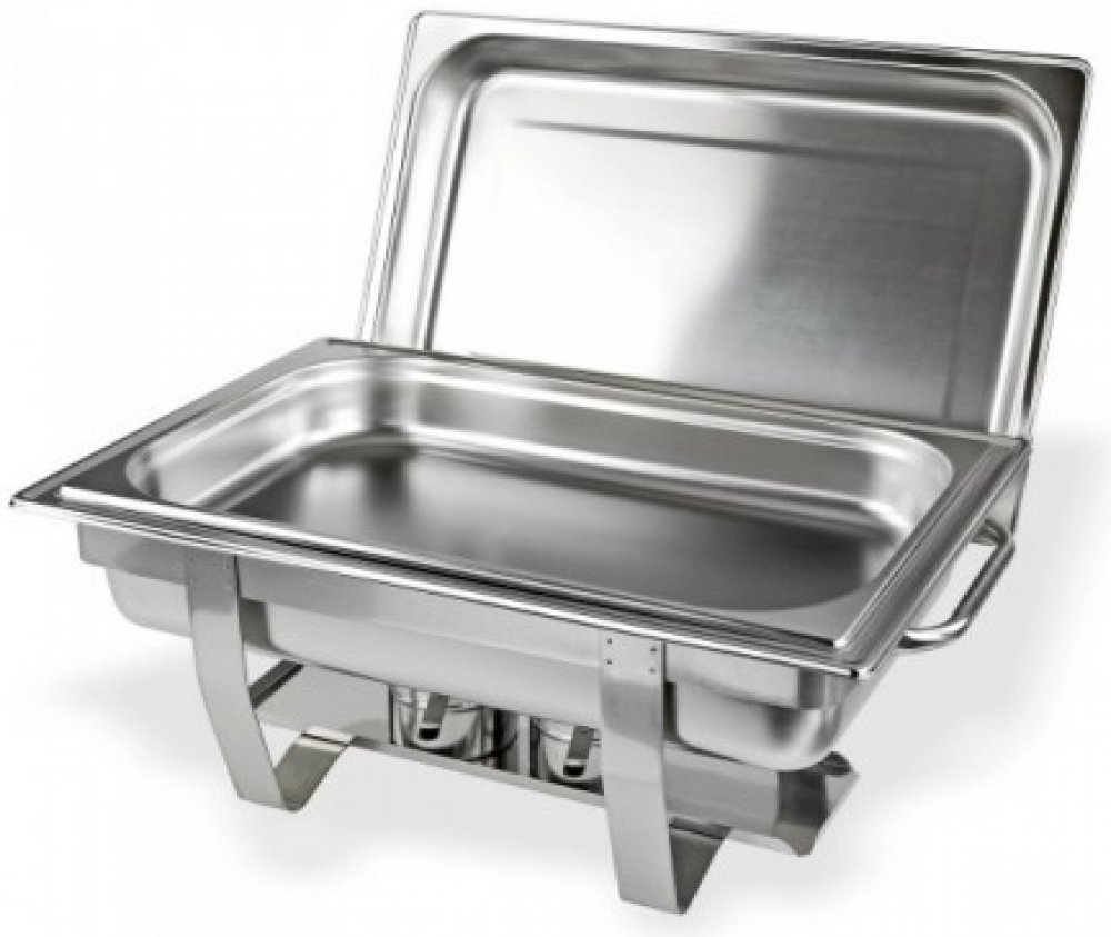 Ohřívač z ušlechtilé oceli s jednou nádobou, určený na udržování teploty jídel, vhodný na party, rodinné oslavy, veletrhy apod. Jedna nádoba na jídlo, jedna velká vana na vodu, dvě uzavíratelné nádoby na hořlavou pastu, kryt, dvě rukojeti pro přenášení. Hořlavá pasta není součástí balení.