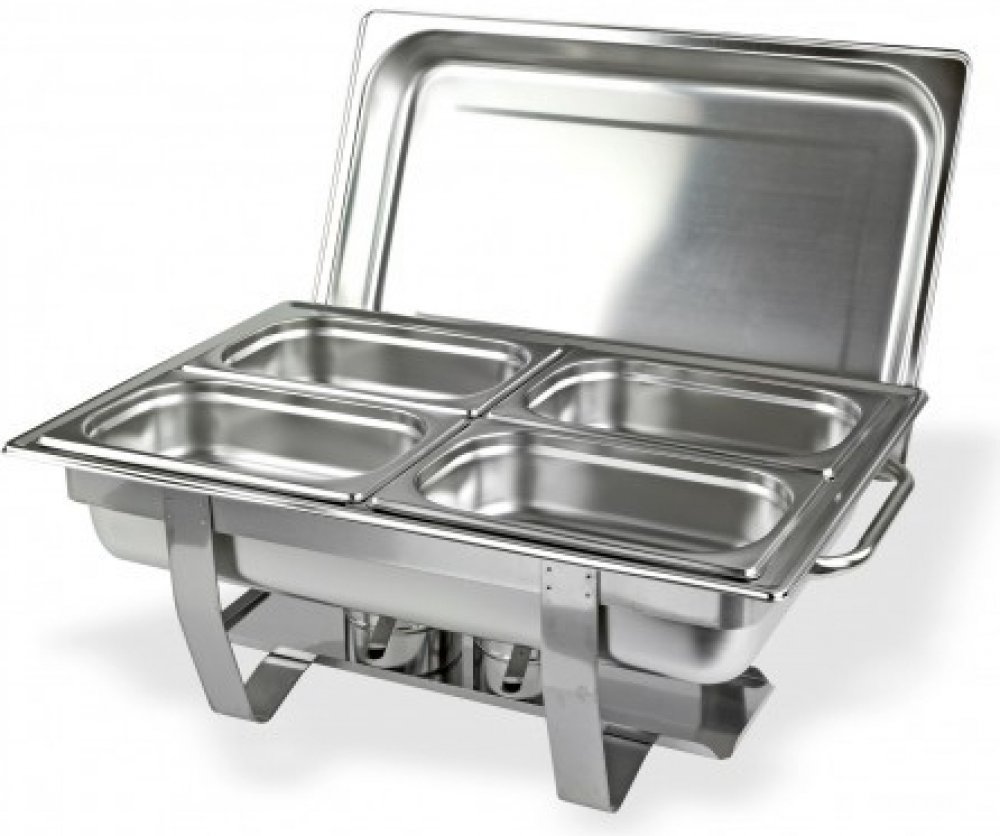 Ohřívač z ušlechtilé oceli se čtyřma nádobami, určený na udržování teploty jídel, vhodný na party, rodinné oslavy, veletrhy apod. Čtyři nádoby na jídlo, jedna velká vana na vodu, dvě uzavíratelné nádoby na hořlavou pastu, kryt, dvě rukojeti pro přenášení. Hořlavá pasta není součástí balení.