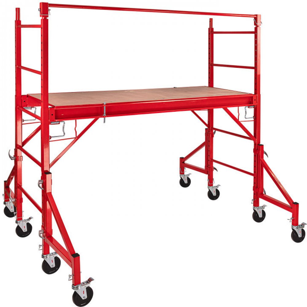 Praktické pojízdné lešení se 4 přídavnými podpěrami pro extra stabilitu a s kladkami. Pro dostupnost nepřístupných míst na štítech, okapech, plotech, stromech a keřích a provádění oprav rychle a efektivně. Ideální pro řemeslníky, domácí kutily a renovátory. Rychlé sestavení a demontáž. Lešení lze zcela rozložit pro šetření úložného prostoru. Osm velkých otočných kol s parkovací brzdou.