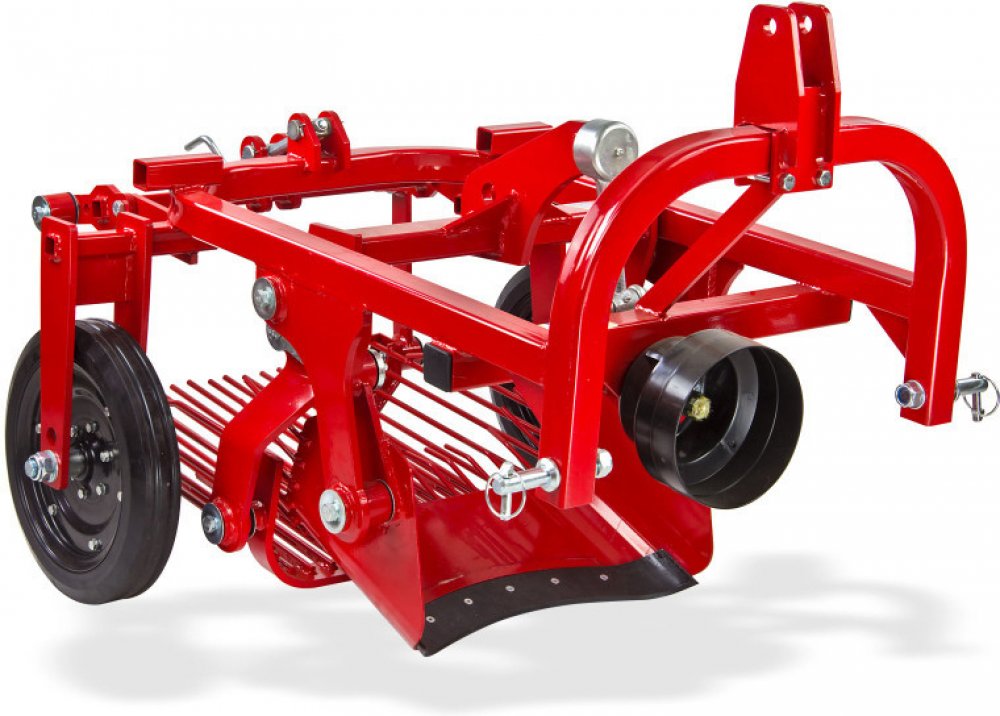 Přípojný mechanismus vhodný na sběr brambor. Rychlá montáž v zadní části, velké gumové kola s regulací rozchodu a výšky a zařízení tlumící vibrace. Součástí výbavy je i odmontovatelný oberučný nůž na ostření. Ideální na menší pole. Připojení na vývodový hřídel, zadní výhoz.