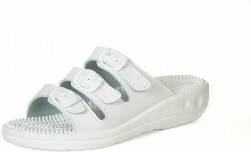 SHOEDOS s.r.o. - zdravotní třípáskové pantofle - MASÁŽNÍ (3pF), bílé 40