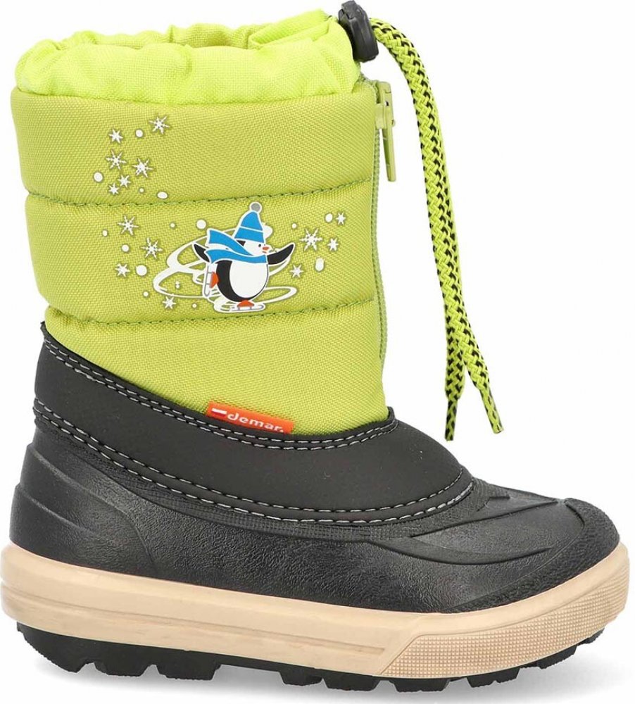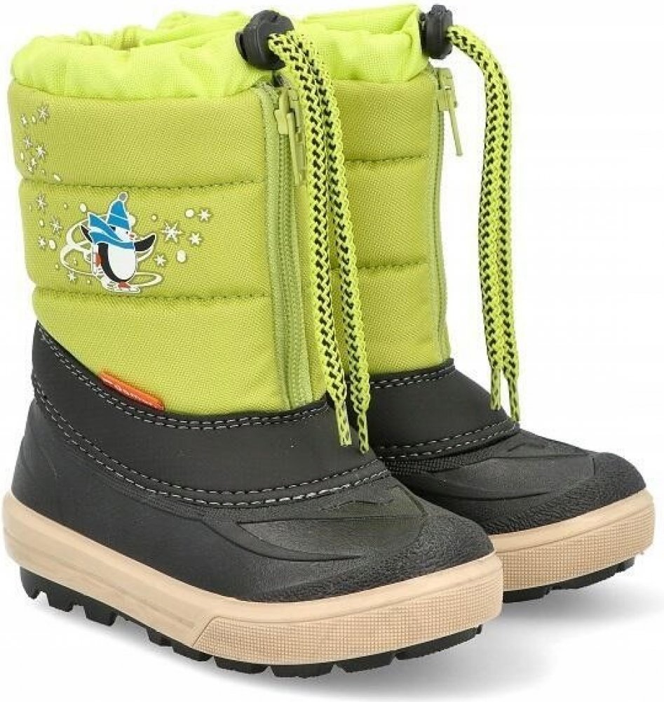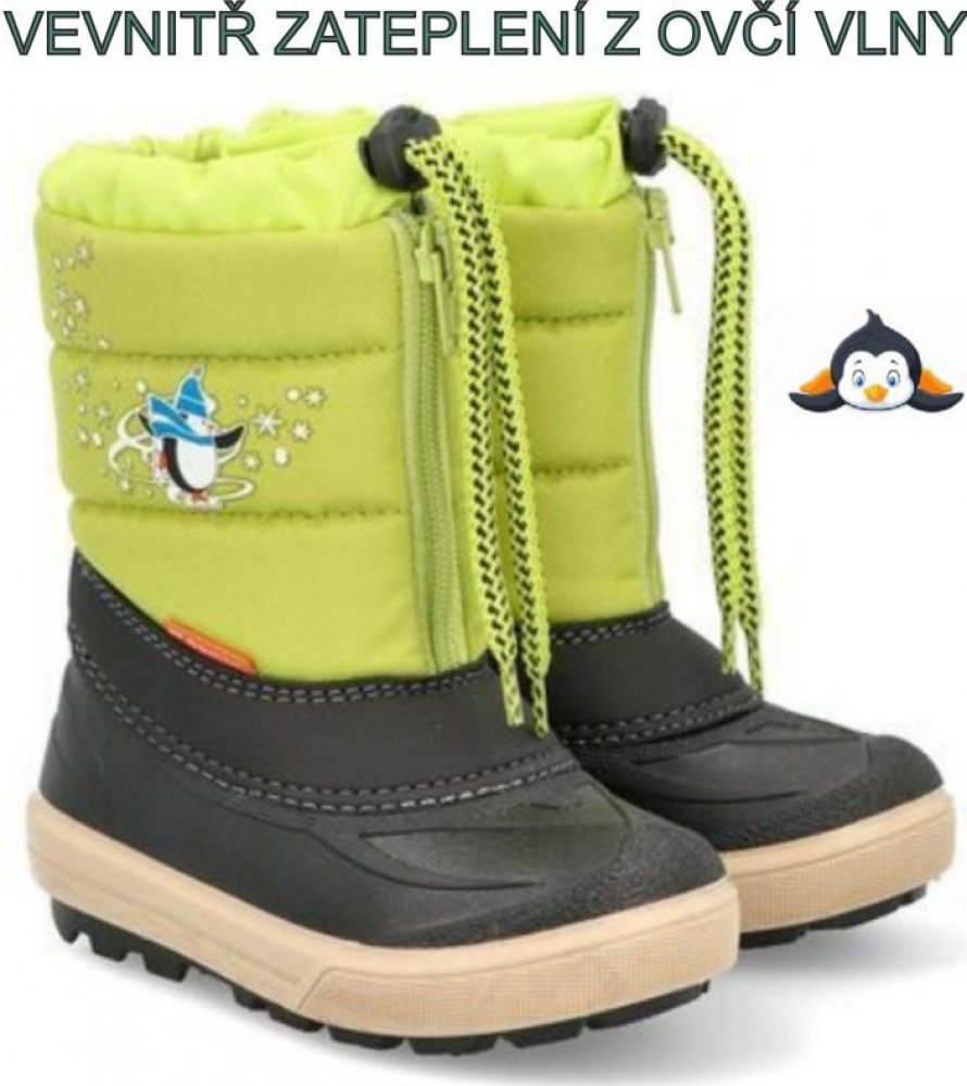 Dětské zimní stahovací sněhule Demar KENNY jsou ideální volbou do chladného počasí. Barva obuvi je zelená. Svrchní část sněhulí je vyrobena z odolné a lehce omyvatelné textilie a spodní nepromokavá část z mrazuvzdorného termokaučuku. Boty jsou zatepleny kožíškem z ovčí vlny, díky kterému jsou velice pohodlné a teplé. Pro pohodlné obouvání a jednoduché zapínání jsou sněhule vybaveny zipem. Na horní...
