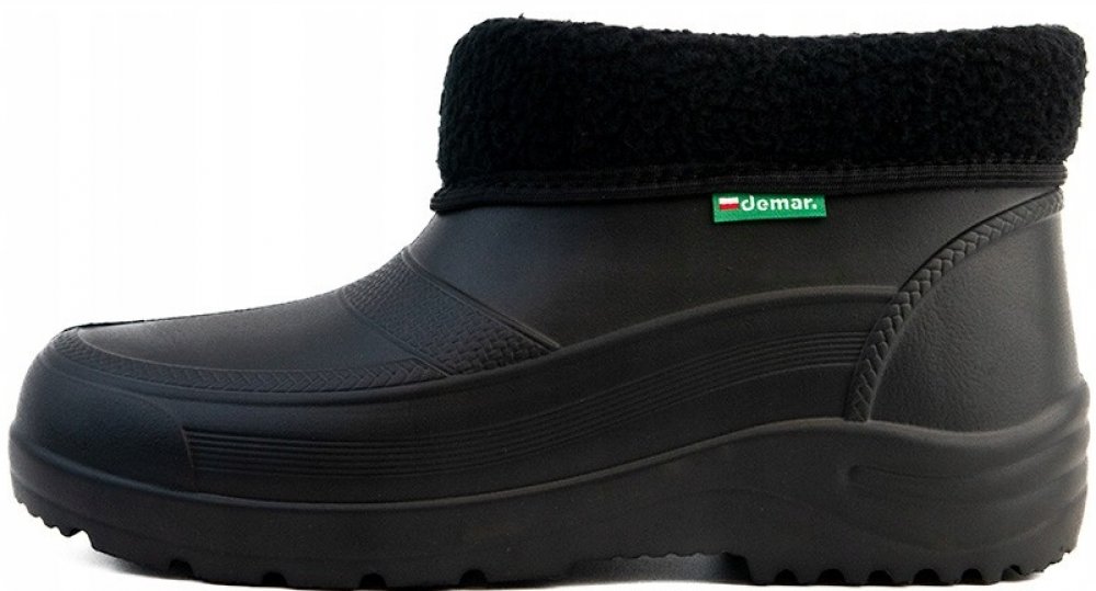 Pánské nízké zateplené holínky Demar BBL 2 jsou pravděpodobně nejlehčí holínky na trhu. Barva gumáků je černá. Holínky jsou vyrobeny z mrazuvzdorného kopolymeru EVA v kombinaci s kožíškem ze syntetického materiálu, díky kterému jsou velice pohodlné a teplé. Gumáky poskytují vynikající uživatelský komfort i při nízkých teplotách. Holínky mají certifikát - označení CE.