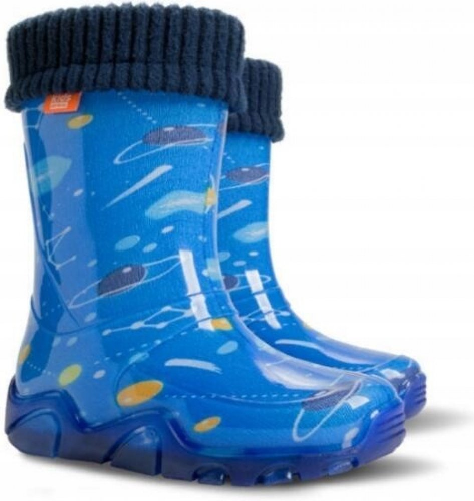 Dětské zateplené holínky STORMER LUX PRINT T KOSMOS od značky DEMAR. Obuv je vybavena reflexním prvkem a praktickou vyjímatelnou izolační vložkou. Holínky jsou perfektní na cestu do školy nebo na hrátky venku.