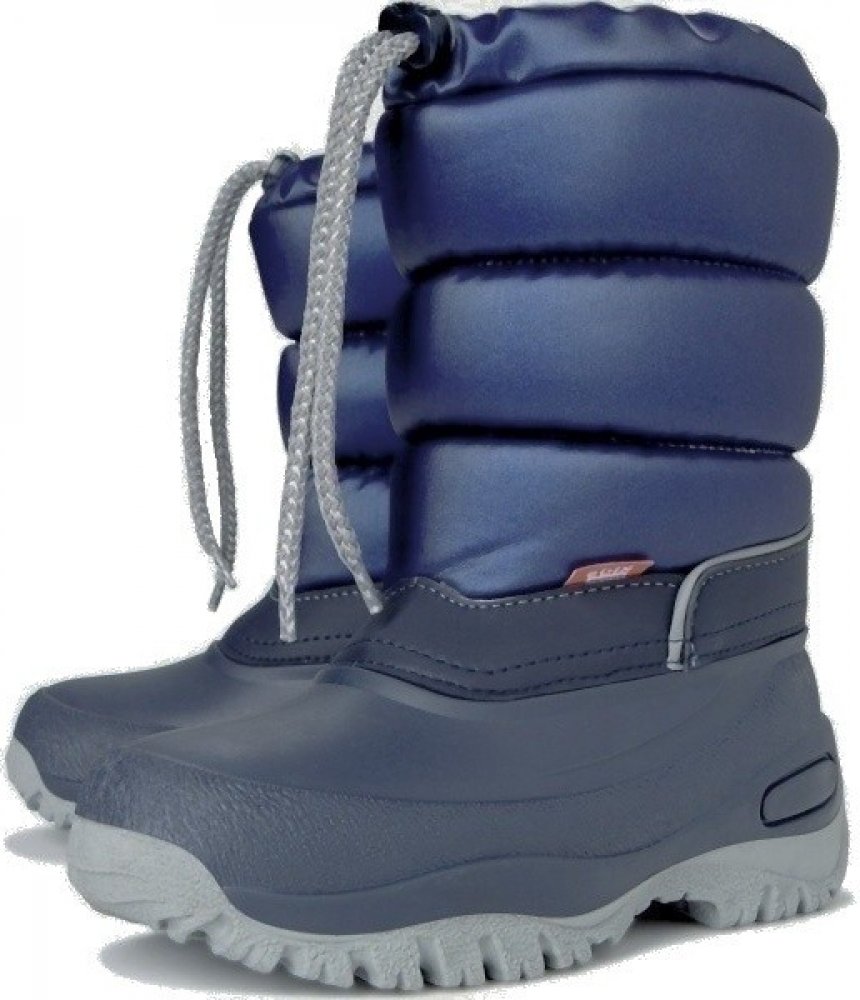 dětské sněhule vhodné do sněhu a mrazu vnitřní vyjímatelná thermo vložka - praktická vložka z materiálu THERMOREFLEX z dvojité vrstvy s hliníkovou mezivrstvou. Je odolná i velmi nízkým teplotám, ideální pro ochranu nohy před chladem. Vložku je možné prát pracími prostředky při teplotách do 40° C. barva - tmavě modrá materiál - kombinace termokaučuku a textilie zatahovací tkanička - možnost zatažen...