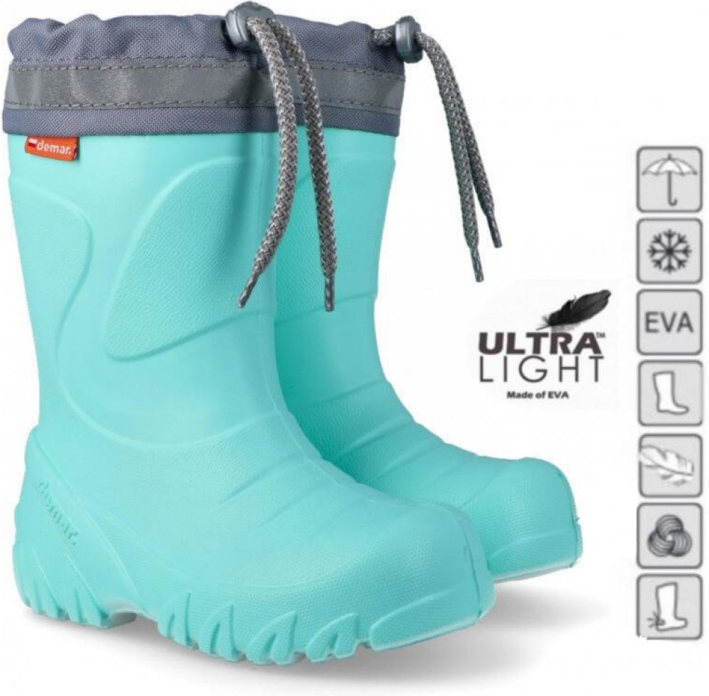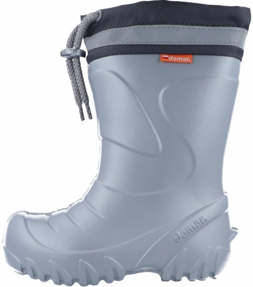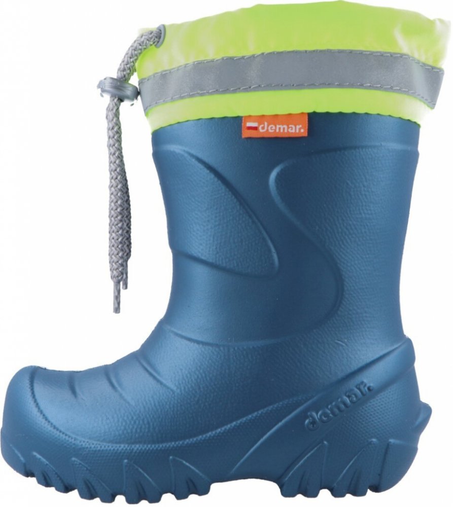 Holínky Demar MAMMUT S jsou navrženy pro děti, které si rády hrají venku za každého počasí. Extra lehký a vysoce odolný kopolymer EVA umožňuje bezstarostné dovádění – holínky váží pouhých 200 g (velikost 26/27) a díky hrubší protiskluzové podrážce udrží i na mokrém nebo kluzkém povrchu stabilitu. Reflexní prvek myslí na bezpečnost v šeru a tmě.