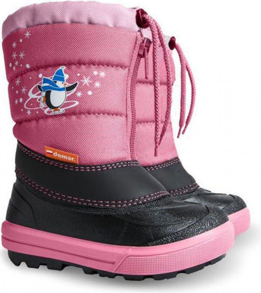 Dětské zimní sněhule Demar KENNY růžové, zateplené 100% ovčí vlnou. Vrchní část z odolné textilie, spodní polovina z gumy.